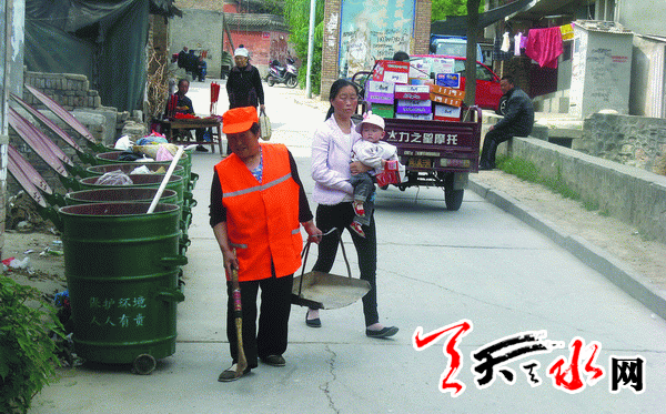 (秦州區(qū)城中村都配備了垃圾桶,還有環(huán)衛(wèi)工人專門負(fù)責(zé)衛(wèi)生保潔。)