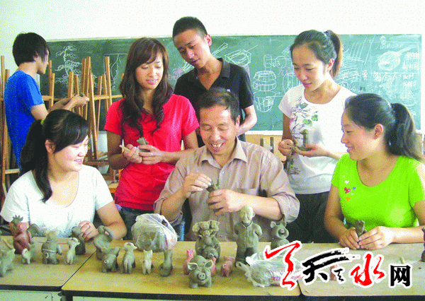????讓他想不到的是,今年7月初他意外地受到了甘肅職業(yè)技術(shù)學(xué)院藝術(shù)學(xué)院張院長的盛情相邀,聘請他去該院旅游工藝品設(shè)計與制作專業(yè)給學(xué)生授泥塑課。