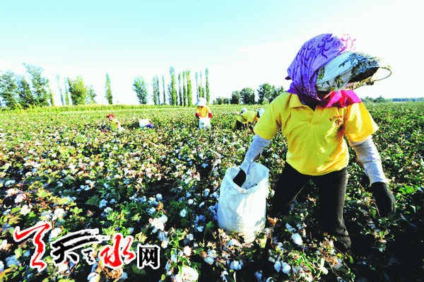 ????天天天水網(wǎng)-天水日報訊(特派記者 年葆東 胡麗霞 黨小軍)9月17日,麥積區(qū)三岔鄉(xiāng)吳砦村采棉工在新疆維吾爾自治區(qū)奎屯市農(nóng)七師124團的棉田里辛勤勞作。