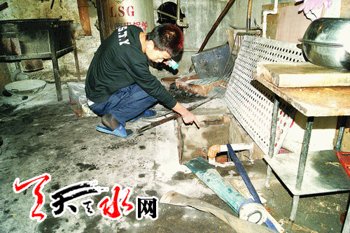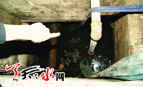 ????看到記者的到來,一臉無奈的武先生把記者帶進(jìn)店內(nèi),走到店后上了幾節(jié)臺階,打開一間緊挨樓房的停車房,揭開一塊地溝蓋板,記者看到地溝內(nèi)滿是污水,氣味熏人,自來水管道、暖氣管道都浸泡在污水里,唯獨看不到排污管道。