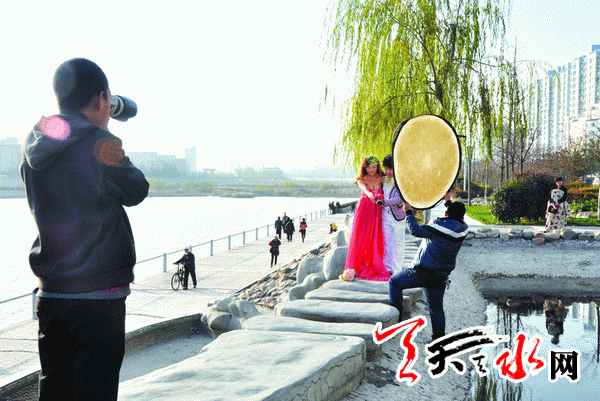 ????天天天水網(wǎng)-天水晚報(bào)訊(記者 王瑩)初冬的暖陽、蕩漾的湖畔,美麗的婚紗、如花的笑靨。連日來,我市天氣晴好,不少即將走入婚姻殿堂的準(zhǔn)新人們被天水湖畔如畫的美景所吸引,紛紛來到此取景拍攝婚紗照,湖水邊、蘆葦灘、小木橋、綠樹下,都成了新人們拍照留念的絕佳去處。
