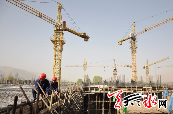 ????天天天水網(wǎng)訊(記者 孫鎮(zhèn))3月31日,甘谷浙江商貿(mào)城項目工地正在加緊施工。甘谷浙江商貿(mào)城項目位于中國供銷甘肅東部(甘谷)物流園區(qū)內(nèi),占地面積158畝,總投資10億元。目前一期工程4.5萬平方米的會館建設(shè)已完成三層封頂,其余預(yù)計4月底完成主體工程,一期工程爭取在今年國慶節(jié)試營業(yè)。