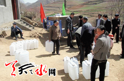 ????在人們都愁苦不堪的時(shí)候,沒想到自3月份以來(lái),村里來(lái)了幾輛拉著大量水桶、水壺的農(nóng)用車,隨車跟過來(lái)的幾位干部告訴村民,鄉(xiāng)上制定了抗旱應(yīng)急措施,他們給廣大困難村民救災(zāi)送水來(lái)了,以緩解山上村民沒水吃的問題。獲此消息的村民們喜出望外,人們紛紛來(lái)到村頭的領(lǐng)水點(diǎn)提水、領(lǐng)水。