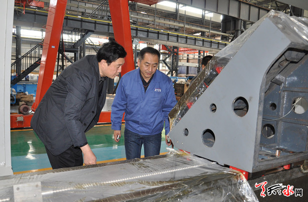 天天天水網(wǎng)訊【記者 馬放】4月3日,市委常委、政法委書記趙衛(wèi)東就天水星火機(jī)床公司數(shù)控重型機(jī)床產(chǎn)業(yè)園、甘肅友聯(lián)制管、市東區(qū)集中供熱等包抓的重大項目建設(shè)工作進(jìn)行了調(diào)研。
