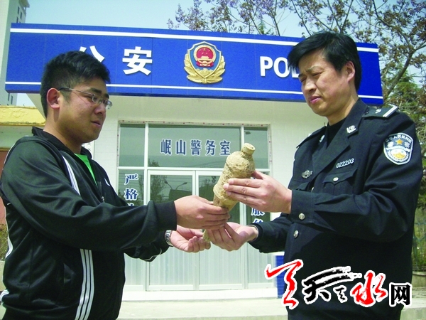 ??? ?天天天水網(wǎng)訊【記者柏拓】4月8日,在秦州區(qū)皇城路邊的林地中,施工人員在埋設(shè)上水管道時,挖出一枚炸彈。由于一民工不識貨,欲將其砸爛賣銅。所幸被工頭認(rèn)出來及時阻止并上交秦州警方,才消除了由此可能引起的安全隱患。