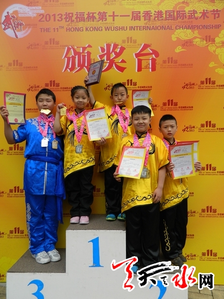 ????天水市青少年活動(dòng)中心于2011年開(kāi)設(shè)武術(shù)項(xiàng)目,先后有近200名少年兒童參加了訓(xùn)練學(xué)習(xí),現(xiàn)有學(xué)員50多人。兩年來(lái),中心以“精武藝、重武德、文武兼修、全面發(fā)展”為特色宗旨,選聘我市武術(shù)名師精心執(zhí)教,科學(xué)設(shè)置訓(xùn)練項(xiàng)目,使一大批喜愛(ài)武術(shù)的少年兒童接受了專(zhuān)業(yè)訓(xùn)練和武德教育熏陶,已組織隊(duì)員參加過(guò)4次省內(nèi)外專(zhuān)業(yè)比賽,取得了良好成績(jī),本次比賽是首次獲得國(guó)際性比賽大獎(jiǎng)。
