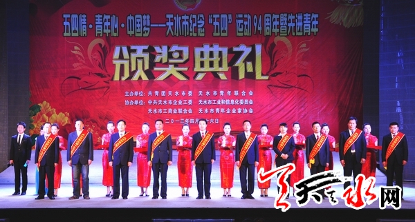 ??? 天天天水網(wǎng)訊【記者 孫鎮(zhèn)】 4月26日,天水市紀(jì)念“五四”運動94周年暨先進(jìn)青年頒獎典禮在秦州劇院隆重舉行。