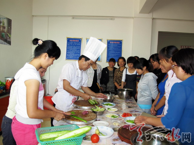 ????像王彩菊這樣首期培訓(xùn)的100余名農(nóng)村進(jìn)城“陪讀”婦女在縣內(nèi)實(shí)現(xiàn)了穩(wěn)定就業(yè),既照顧了子女上學(xué),又增加了家庭收入,實(shí)現(xiàn)了“陪讀”、就業(yè)兩不誤。今年以來(lái),秦安縣面對(duì)農(nóng)村留守婦女進(jìn)城“陪讀”現(xiàn)象增多的實(shí)際情況,成立了專門工作組,對(duì)縣城中小學(xué)周邊的農(nóng)村進(jìn)城“陪讀”婦女進(jìn)行了詳細(xì)調(diào)查摸底,在全面了解她們就業(yè)愿望和培訓(xùn)意向的基礎(chǔ)上,根據(jù)她們年齡偏大、文化較低、缺乏技能、閑時(shí)間較多和家政市場(chǎng)需求大、就業(yè)相對(duì)容易的特點(diǎn),聯(lián)合家政服務(wù)公司為他們開設(shè)了以保潔、育嬰、護(hù)理、按摩、烹飪、禮儀等為主要內(nèi)容的常年家政培訓(xùn)班。培訓(xùn)班充分利用周末的有利時(shí)機(jī),聘請(qǐng)專業(yè)授課教師,實(shí)行“早上課,下午練”的培訓(xùn)模式,通過(guò)集中面授與業(yè)余自學(xué)相結(jié)合、理論教學(xué)與實(shí)踐操作相結(jié)合、現(xiàn)場(chǎng)實(shí)習(xí)和經(jīng)驗(yàn)交流相結(jié)合的培訓(xùn)形式,大力培訓(xùn)農(nóng)村進(jìn)城“陪讀”婦女,幫助她們學(xué)技術(shù)、增本領(lǐng)、找路子。