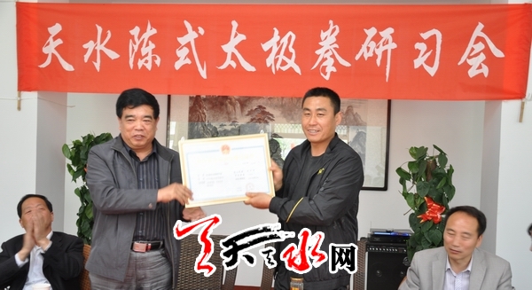 天天天水網(wǎng)訊(記者閆鵬飛)5月5日,天水陳式太極拳研習(xí)會在秦州區(qū)成立,市民管局領(lǐng)導(dǎo)為該會頒發(fā)了證書,這是天水首家批準(zhǔn)成立的太極拳協(xié)會。
