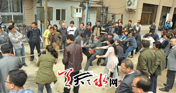 ??? 天天天水網(wǎng)訊(記者 周文濤 常亮 見習(xí)記者 韓鐵英)“報社是我家,發(fā)展靠大家”。為進一步豐富天水日報社干部職工文化生活,營造和諧、團結(jié)的工作氛圍。5月7日,天水日報社組織干部職工在報社院內(nèi)舉行了一場激烈的拔河比賽。