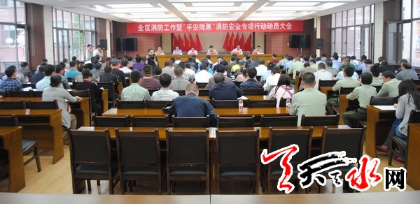 ????天天天水網(wǎng)訊【記者蔚軍平 通訊員楊耀軍 王國超】5月14日,秦州區(qū)召開消防工作暨平安隴原消防安全專項(xiàng)行動動員會議。會議貫徹落實(shí)了省、市消防工作會議精神,回顧總結(jié)了2012年度全區(qū)消防工作,并就今年全區(qū)消防工作暨平安隴原消防安全專項(xiàng)行動主要工作任務(wù)進(jìn)行了安排部署。