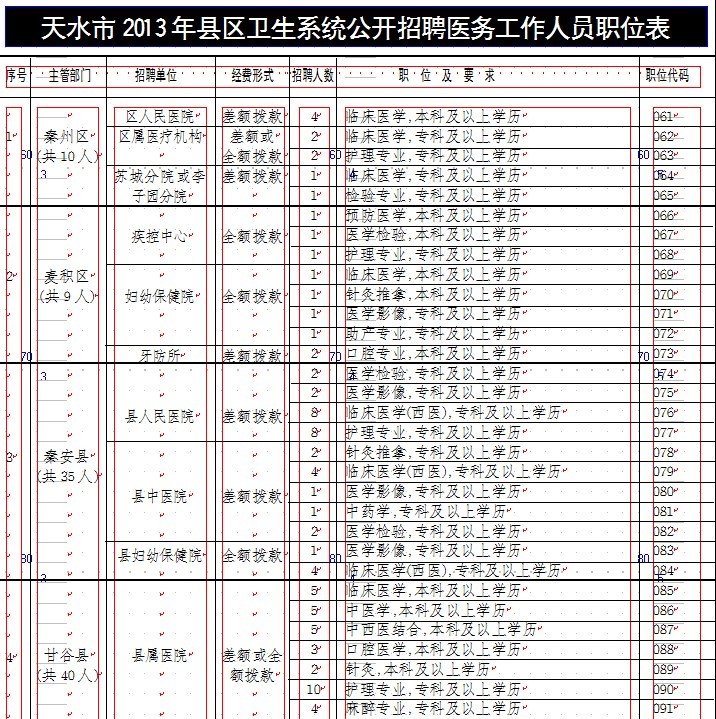 ????2、天水市2013年縣區(qū)衛(wèi)生系統(tǒng)公開招聘醫(yī)務(wù)工作人員職位表