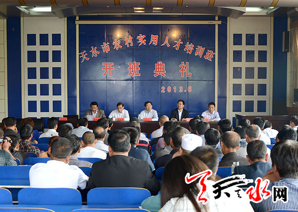 ??? 天天天水網(wǎng)訊 為加快天水市現(xiàn)代農(nóng)業(yè)發(fā)展步伐,提升農(nóng)村實用人才能力素質(zhì)和專業(yè)技能,發(fā)揮在新農(nóng)村建設和統(tǒng)籌城鄉(xiāng)發(fā)展中的引領(lǐng)示范作用。6月4日上午,2013年天水市農(nóng)村實用人才專題培訓班在天水農(nóng)業(yè)學校開班,全市五縣兩區(qū)參加培訓的100多名學員和天水農(nóng)校部分教師參加了開班典禮。天水市委常委、組織部部長王光慶出席開班儀式,并作了專題輔導報告。