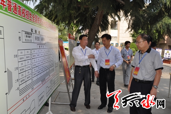 ??? 天天天水網(wǎng)訊【記者徐強(qiáng) 閆琦玉】 6月6日下午,天水市領(lǐng)導(dǎo)彭鴻嘉、謝簡(jiǎn)平、白曉玲、呂淙江帶領(lǐng)相關(guān)部門負(fù)責(zé)人分組深入兩區(qū)各高考考點(diǎn),就各項(xiàng)準(zhǔn)備工作進(jìn)行了督促檢查。