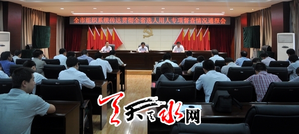 ????天天天水網(wǎng)訊(記者 孫燕蕓)6月14日上午,中共天水市委組織部召開(kāi)會(huì)議,傳達(dá)貫徹全省選人用人專(zhuān)項(xiàng)督查情況。中共天水市委常委、組織部長(zhǎng)王光慶在會(huì)上強(qiáng)調(diào),要進(jìn)一步嚴(yán)格干部選拔任用程序,規(guī)范干部選拔任用工作,不斷提高干部選拔任用工作的規(guī)范化、科學(xué)化水平,為推動(dòng)全市經(jīng)濟(jì)社會(huì)轉(zhuǎn)型跨越發(fā)展提供堅(jiān)強(qiáng)的組織保證。