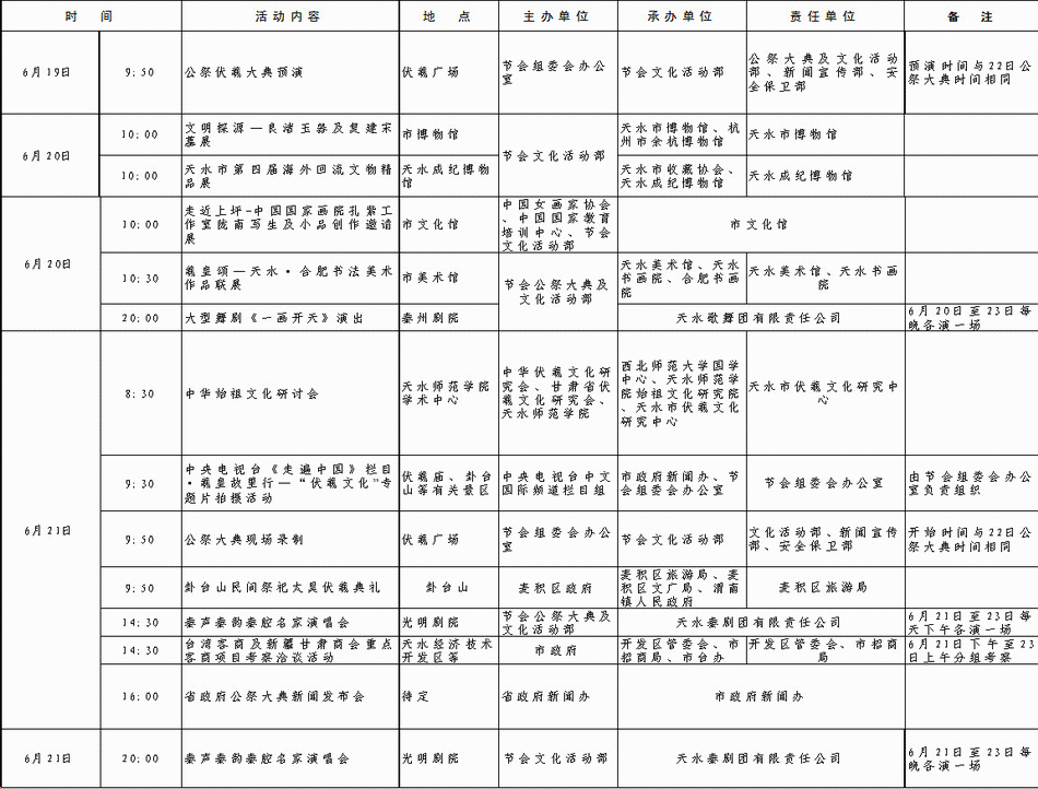 暨中國(guó)天水伏羲文化旅游節(jié)各項(xiàng)活動(dòng)安排表