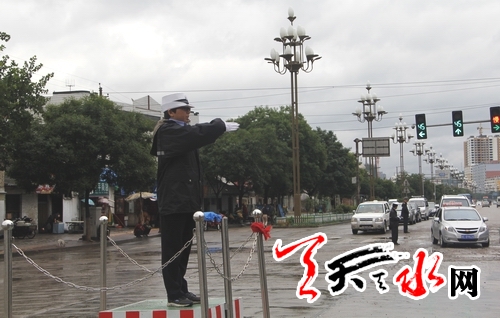 ????天天天水網(wǎng)訊(通訊員 孫彥明)2013年6月20日,參加甘肅省伏羲大典暨二十四屆天水伏羲文化文化節(jié)代表團及商貿(mào)車輛陸續(xù)到達天水市秦州區(qū),道路車輛流量增加,交通壓力較大,天水市秦州交警大隊嚴格執(zhí)行《節(jié)會交通保障方案》部署,派出主要警力,上路執(zhí)勤管控,冒雨實施了節(jié)會交通保障勤務。