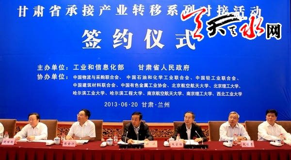 天天天水網(wǎng)蘭州電(記者 郝勤學 孫鎮(zhèn))6月20日,甘肅省承接產(chǎn)業(yè)轉移系列對接活動舉行簽約儀式,各省區(qū)市與甘肅省共簽約產(chǎn)業(yè)轉移項目765項,其中現(xiàn)場簽約87項。天水市現(xiàn)場簽約了投資10億元的分布式燃氣供熱機組生產(chǎn)項目、投資11億元的社棠產(chǎn)業(yè)孵化園、投資7億元的“艾復康”膠囊產(chǎn)業(yè)化3個項目。