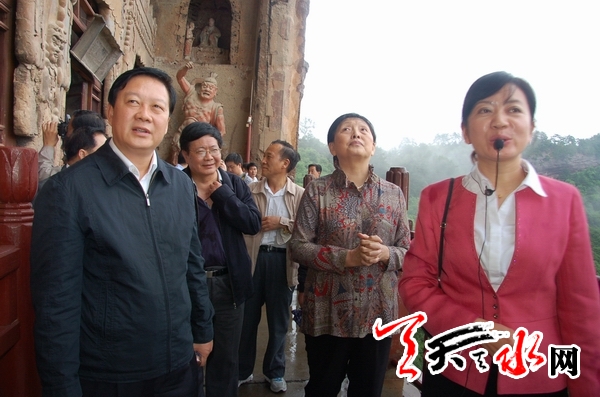 ????當天,張梅穎一行在省政協(xié)副主席粟震亞,中共天水市委副書記、天水市政協(xié)主席楊維俊,天水市政協(xié)副主席王欽錫陪同下,先后深入到麥積山、伏羲廟、南宅子、天水市博物館,對天水市華夏文明傳承創(chuàng)新區(qū)建設情況進行了考察,并聽取了匯報。