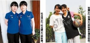 ????杜玉潔(左)、杜玉娜(右)姐妹倆(左圖)?! 堟?左)、張瑾(右)姐妹倆在清華校園?! ≌掌鶠楸救颂峁?/p>