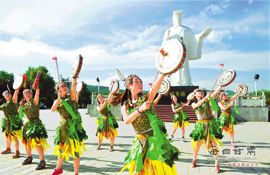 ??? 6月27日,清水縣大型舞蹈《軒轅鼓舞》正在加緊排練。今年,該縣搶抓絲綢之路國際旅游節(jié)、軒轅文化節(jié)等節(jié)會機遇,精心打造軒轅故里文化旅游品牌。?(記者 李小龍)