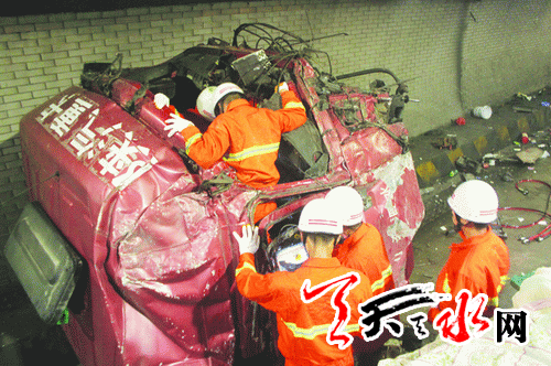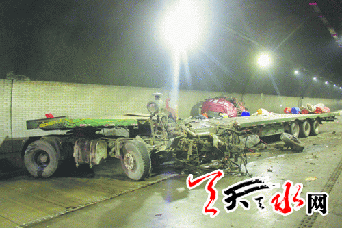 ????天天天水網(wǎng)訊(記者 蔚軍平 通訊員 蘇應文)7月2日11時45分時,一輛山東籍半掛貨車行駛至寶天高速公路麥積山隧道內(nèi)發(fā)生交通事故,未載貨物的半掛車橫向停在路面上,車身與駕駛室分離后,駕駛室嚴重變形,一人被困。