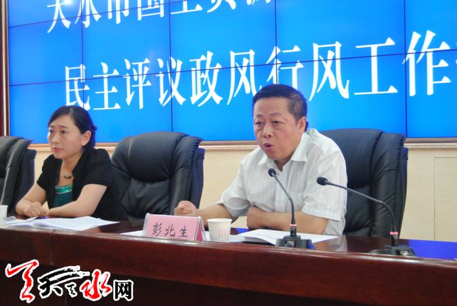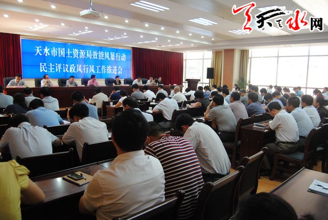 天天天水網(wǎng)訊(記者 張文都)根據(jù)全市效能風(fēng)暴民主評議政風(fēng)行風(fēng)工作的總體安排部署,7月5日,天水市國土資源局召開效能風(fēng)暴政風(fēng)行風(fēng)評議工作推進會。會議要求,國土資源系統(tǒng)要增強服務(wù)意識,虛心聽取各方面的意見和建議,自覺接受監(jiān)督,開展自查自糾,做到公正執(zhí)法、優(yōu)質(zhì)服務(wù)、廉潔從政,努力推進政風(fēng)行風(fēng)建設(shè)上新臺階。