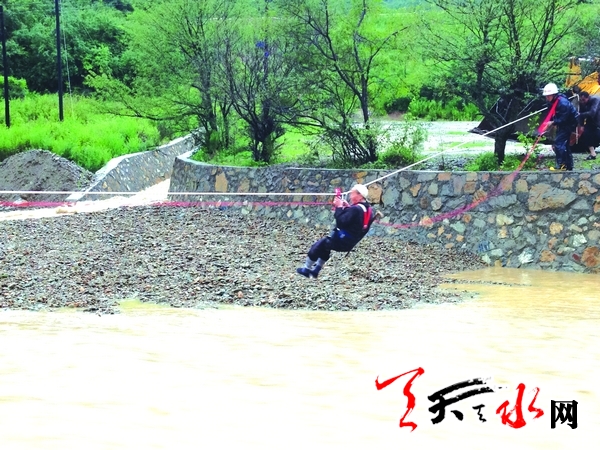 ????根據(jù)現(xiàn)場情況,救援官兵決定利用救生拋投器進(jìn)行施救,通過拋投將繩索拋到對(duì)岸,并示意被困人員將繩索綁牢在鏟車上,在確定繩索牢固后,一名水性過硬的消防戰(zhàn)士穿上救生衣,系上安全帶,在救援繩索的保護(hù)下,攜帶救生衣和安全帶向河道對(duì)面滑去。