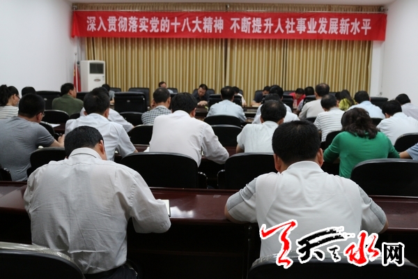 ????天天天水網(wǎng)訊【通訊員石心慧 移紅霞】7月11日,天水市人社局召開黨委中心組學習會議,認真學習了中央、省委、市委關(guān)于黨的群眾路線教育實踐活動會議精神,對做好當前各項重點工作和黨的群眾路線教育實踐活動工作進行了安排部署。