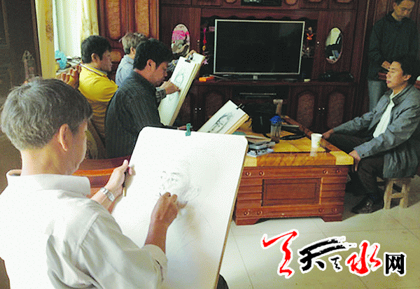 ????今年6月,天津市和平區(qū)文聯(lián)組織美術(shù)家采風(fēng)團(tuán)在西部地區(qū)進(jìn)行采風(fēng)活動,擬定的重點寫生地區(qū)是陜西寶雞、楊凌、隴縣以及甘肅張川的關(guān)山、秦安的大地灣等地,沒想到剛抵達(dá)天水秦州區(qū)汪川鎮(zhèn)的蘇成村,畫家們便被這里豐實的寫生對象所吸引,說啥也不愿走。4天時間,畫家們共創(chuàng)作80多幅素描,搜集寫生對象200多個……