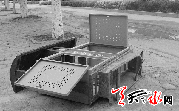 ????7月3日一大早,不少細(xì)心的市民發(fā)現(xiàn),原本每隔數(shù)十米安裝在羲皇大道天水機(jī)場至趙崖段公路兩側(cè)的幾十個果皮箱不知為何竟同時慘遭毒手,大多已被損壞的面目全非。其中,有的果皮箱內(nèi)置鐵皮箱被盜走,僅留兩扇敞開的鐵皮門在風(fēng)中搖晃;有的則被人砸得完全變了形;還有的甚至在被盜走內(nèi)膽后遭“連根拔起”,干脆“睡”在馬路上……數(shù)百米長的路段,竟連一個完整的果皮箱都找不到。