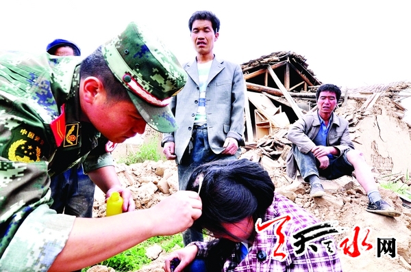 ????這場地震造成的嚴(yán)重災(zāi)情深深牽動(dòng)著天水官兵們的心。地震發(fā)生之后,我市駐軍某部、天水市消防支隊(duì)等部隊(duì)官兵馳援定西地震災(zāi)區(qū)。