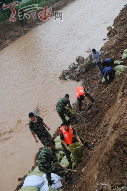 ????據(jù)麥積區(qū)東柯河工業(yè)園龐主任介紹說,連日來的幾場大雨,致使東柯河河水暴漲,將已經(jīng)修好的170米河堤沖毀,直接經(jīng)濟損失近400萬元。河堤被毀,水患威脅東柯河工業(yè)園區(qū),東柯河工業(yè)園區(qū)地處麥積區(qū)馬跑泉鎮(zhèn)東北角的東柯河谷北段,規(guī)劃面積為167.83公頃。園區(qū)基礎設施概算總投資6.3億元,產(chǎn)業(yè)定位為電子信息、生物工程、新材料等高新技術產(chǎn)業(yè)和機械制造、電工電器、新型環(huán)保建材制造等產(chǎn)業(yè)。一旦園區(qū)再次遭遇洪水,后果不堪設想,為確保園區(qū)安全度汛,園區(qū)組織人員及時預防搶修,但人員緊張,進度緩慢。得知他們遇到困難后,天水武警支隊麥積中隊立即派出16名官兵,趕往現(xiàn)場,幫助東柯河工業(yè)園工作人員和民工搶險。武警官兵加入,使得搶修進度明顯加快,現(xiàn)場搶修人員表示,將盡快修好堤壩,嚴密防范水患再次侵襲。