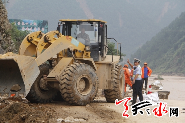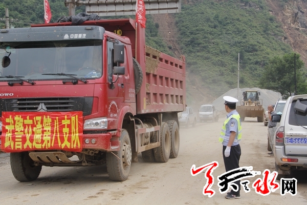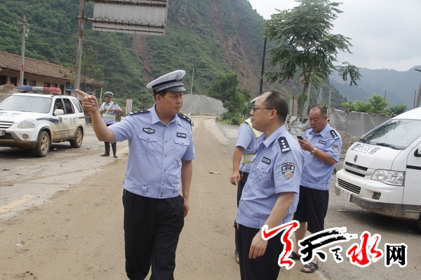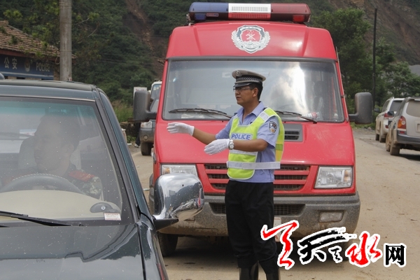 ????天天天水網(wǎng)訊(孫彥明 趙 焱)國(guó)道316線秦州娘娘壩鎮(zhèn)境內(nèi)路段因暴雨泥石流垮塌交通中斷后,天水市郊區(qū)交警大隊(duì)從7月25日7時(shí)起,迅速啟動(dòng)應(yīng)急預(yù)案,緊急出動(dòng)警力,趕赴泥石流受阻路段,冒著隨時(shí)垮塌的泥石險(xiǎn)情,參與搶險(xiǎn)救災(zāi),實(shí)施了交通疏導(dǎo)和安全保障重大勤務(wù)。