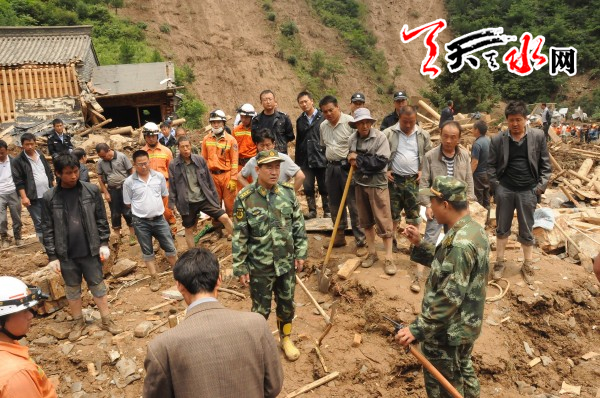 7月26日早上8時(shí),天水消防支隊(duì)接到秦州區(qū)區(qū)委區(qū)政府的命令:秦州區(qū)娘娘壩鎮(zhèn)劉家河村發(fā)生山體滑坡,造成9人被埋,要求緊急救援。時(shí)間就是生命,一場(chǎng)在泥濘中的生命大營(yíng)救拉開了序幕。