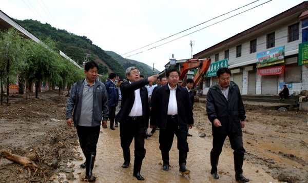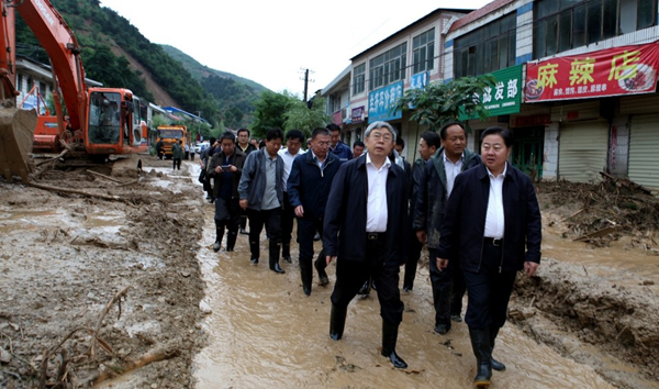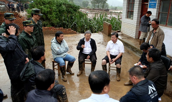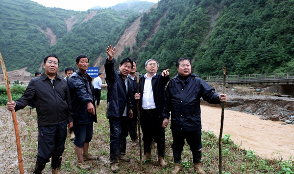7月27日,省委常委、常務(wù)副省長劉永富在連夜召開緊急會議,研究部署了搶險救災(zāi)工作之后,休息了不到兩個小時,便于當(dāng)日上午一大早與市領(lǐng)導(dǎo)馬世忠、王銳、張明泰、蔣曉強一道,趕赴災(zāi)情最為嚴重的秦州區(qū)娘娘壩鎮(zhèn),現(xiàn)場察看災(zāi)情,慰問受災(zāi)群眾,指導(dǎo)搶險救災(zāi)。劉永富強調(diào),要采取一切措施,抓緊轉(zhuǎn)移安置受災(zāi)群眾,確保人民群眾生命安全。