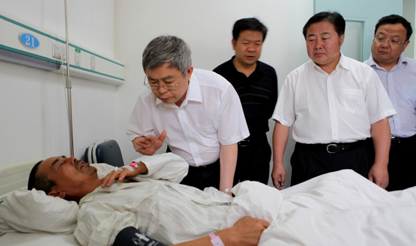 當(dāng)天下午,劉永富還到市第一人民醫(yī)院看望了娘娘壩鎮(zhèn)因塌方受傷的群眾,關(guān)切地詢問了傷員傷情,為他們送去了慰問金,囑咐他們在醫(yī)院安心養(yǎng)傷,祝愿他們早日康復(fù)。