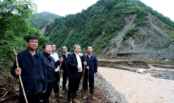 在趕往重災(zāi)村南峪村劉家河自然村時,由于通村道路已被洪水沖斷,劉永富一行便在湍急的河流中步行約一個小時到達劉家河村。到達劉家河村后,劉永富便深入了解村莊受災(zāi)和村民轉(zhuǎn)移情況,囑咐村民一定要立即轉(zhuǎn)移,不要在家中逗留,確保自身安全。