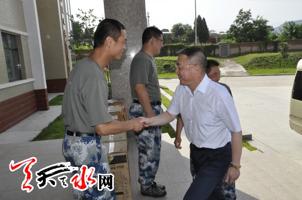 ??? 天天天水網(wǎng)訊【記者 王曉馨】7月31日,“八一”建軍節(jié)來臨之際,市委副書記、市長王銳到部分駐市部隊駐地開展了“八一”建軍節(jié)慰問活動,代表市四大組織和全市人民特別是受災(zāi)群眾,向他們在我市“7.25”暴洪群發(fā)性地質(zhì)災(zāi)害及“7.22”岷縣漳縣6.6級地震波及我市的搶險救災(zāi)工作中所做出的積極貢獻表示感謝和崇高敬意,并通過他們向駐市廣大官兵致以節(jié)日的問候。