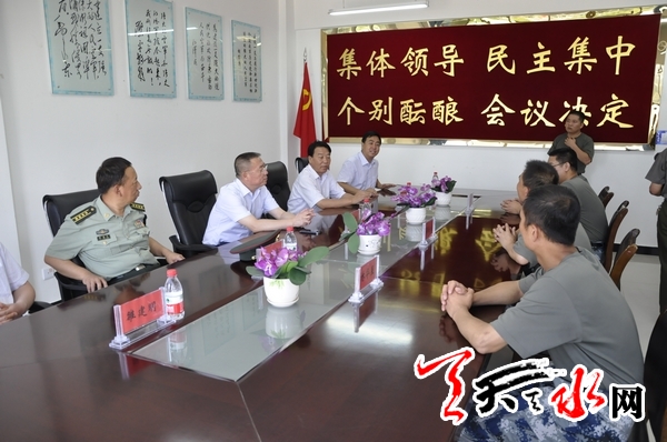 ????帶著慰問品,王銳先后來到天水軍分區(qū)、省軍區(qū)天水干休所、天水公安消防支隊、94119部隊等駐市部隊駐地,聽取了各駐市部隊有關(guān)部隊建設(shè)等方面的情況匯報。王銳說,長期以來,我市各級黨委、政府高度重視雙擁工作,始終把支持國防和軍隊建設(shè)當作義不容辭的責任,在工作上支持、生活上關(guān)心、服務(wù)上保障,幫助部隊解決了一批事關(guān)建設(shè)發(fā)展的實際困難。駐市各部隊忠誠履行黨和人民賦予的神圣使命,把駐地當故鄉(xiāng),視百姓為親人,在不斷加強革命化現(xiàn)代化正規(guī)化建設(shè)的同時,積極投身地方重點搶險救災(zāi)、雙擁共建等工作,為我市改革發(fā)展穩(wěn)定作出了重要貢獻。尤其是在我市“7.25”暴洪群發(fā)性地質(zhì)災(zāi)害及“7.22”岷縣漳縣6.6級地震波及我市的搶險救災(zāi)工作中,駐市各部隊官兵第一時間趕赴災(zāi)區(qū),轉(zhuǎn)移群眾、搶救傷員、搶修道路,給予了我們巨大幫助和支持,發(fā)揮了主力軍和突擊隊作用,人民軍隊的卓越功績必將載入天水史冊,必將永遠銘刻在天水人民心中。
