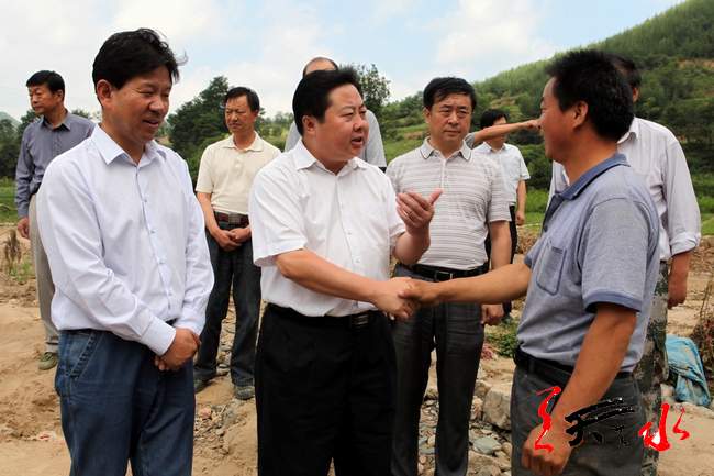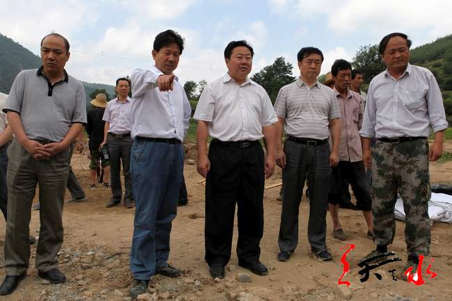 ??? 市委常委、秦州區(qū)委書記張明泰,市委常委、市委秘書長蔣曉強一同察看災(zāi)情。