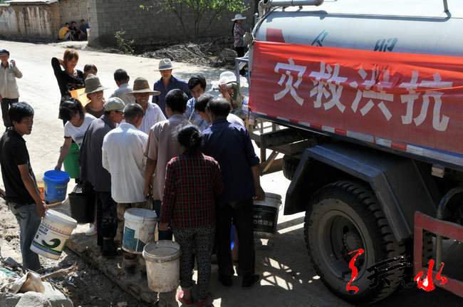 ???最近一周每天早晨不到7點(diǎn),應(yīng)急供水隊(duì)的王文偉隊(duì)長(zhǎng)便和王建鋒一起趕到單位,沖洗被稀泥糊遍的車身,開(kāi)始為各自負(fù)責(zé)的10噸大罐車加水。8點(diǎn)多罐車裝滿水,兩人便馬不停蹄地向娘娘壩重災(zāi)區(qū)開(kāi)進(jìn),開(kāi)始一天的送水工作。