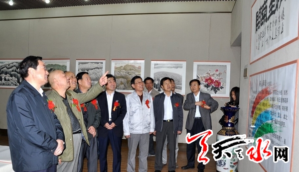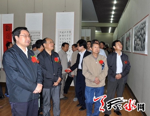 省政協(xié)副主席張津梁,市人大常委會副主任謝簡平,副市長霍衛(wèi)平,市政協(xié)副主席王欽錫以及部分老干部出席開展儀式并參觀了書畫展。