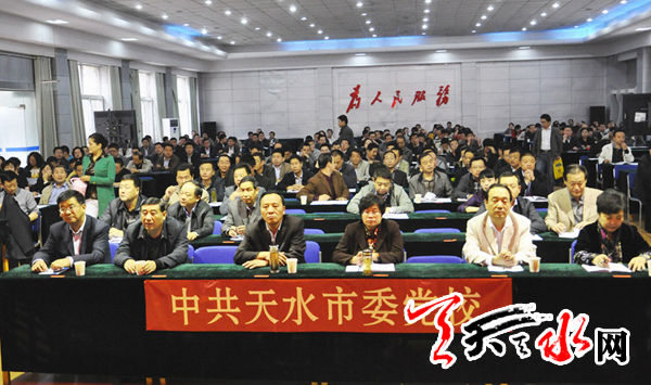 ??? 天天天水網(wǎng)訊【記者 馬放】10月12日,全省領(lǐng)導(dǎo)干部“富民興隴”系列講座2013年第八講在蘭州主會場開講,王正毅應(yīng)邀作了《世界體系、國家興衰與中國崛起》的專題演講。中共天水市委常委、市紀(jì)委書記李美華,天水市政協(xié)副主席王欽錫、安志宏、楊發(fā)元、何道華和200多名機(jī)關(guān)干部在市委黨校禮堂通過視頻聆聽了講座。