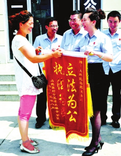 ????“出嫁女”給麥積區(qū)法院花牛法庭送來錦旗表示感謝