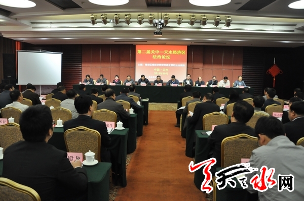 ??? 天天天水網(wǎng)(記者??令文慧)10月21日,由天水市法學(xué)會(huì)主辦的第二屆“關(guān)中天水經(jīng)濟(jì)區(qū)法治論壇”在我市隆重舉行。中國法學(xué)會(huì)黨組成員、副會(huì)長李清林,甘肅省政法委副書記侯效歧,陜西省法學(xué)會(huì)專職副會(huì)長雷寶生,天水市委常委、政法委書記、市法學(xué)會(huì)會(huì)長趙衛(wèi)東,副市長蔡建明及部分法學(xué)法律界代表出席論壇。