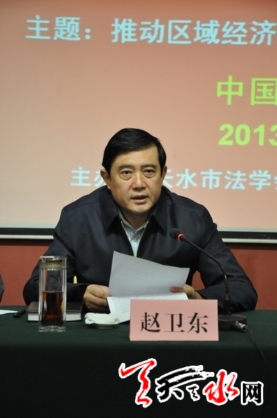 天水市委常委、政法委書記、市法學(xué)會(huì)會(huì)長趙衛(wèi)東致辭