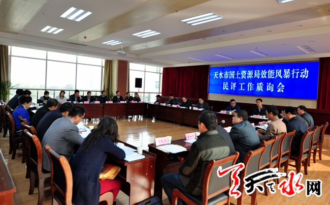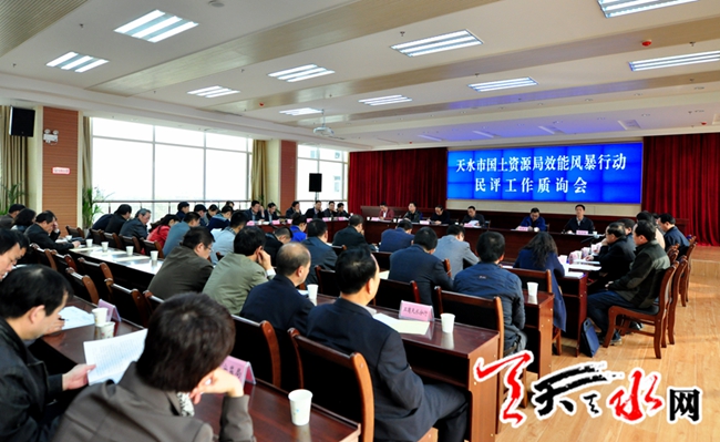 天天天水網(wǎng)訊: 記者何永德 10月28日下午, 天水市國土資源局召開2013年效能風(fēng)暴行動民評工作質(zhì)詢會,市紀(jì)委、市效能風(fēng)暴行動第二行評組、行評代表和服務(wù)對象及市國土局干部職工參加了會議。