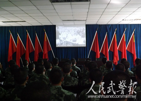 ????觀看駐地宣傳片。圖片來源:人民武警報