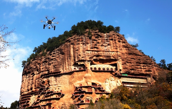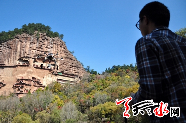 ??? 天天天水網(wǎng)訊(記者 孫鎮(zhèn))11月1日,紀錄片《麥積山石窟》攝制人員在利用航拍設備進行航拍。由中央電視臺攝制的5集大型高清電視紀錄片《麥積山石窟》于10月24日在天水市開機,該紀錄片利用大量航拍技術,對麥積山、伏羲廟、龍城廣場和城市風貌進行立體式、全方位拍攝,多角度展現(xiàn)我市深厚的歷史文化底蘊、豐富的文化旅游資源,以提高麥積山石窟和天水市的影響力。